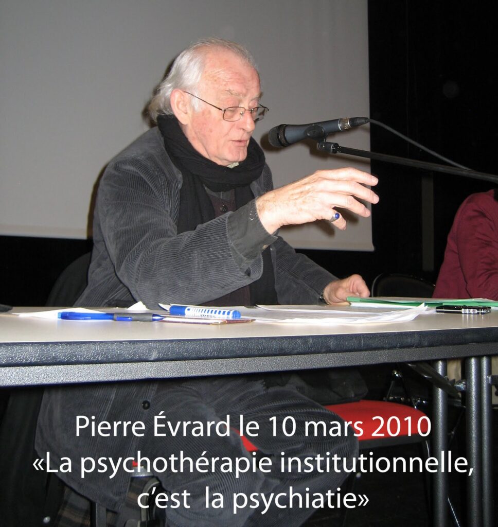 Cette prise de position de Pierre Évrard, psychiatre au Centre Hospitalier de Montfavet (Avignon) et rédacteur en chef de Psy Cause à l’occasion de la Journée organisée par notre revue le 10 mars 2010 à Montfavet sur le thème de la transmission, s’inscrit dans la ligne éditoriale de la psychiatrie humaniste défendue par la revue Psy Cause, qui met au premier plan la personne avant le découpage en symptômes. Les photos jointes retracent quelques temps forts de cette dimension dans nos manifestations scientifiques. Ainsi dans la clinique de Saint Martin de Vignogoul près de Montpellier que certains considèrent comme étant la Laborde du sud, en 2002 lors de notre congrès qui s’y déroulait sur l’écriture présidé par mon maître Roger Gentis. Ainsi à Vaison la Romaine en 2006 à l’occasion de notre congrès sur les mythes fondateurs de la psychiatrie. Ainsi à Antibes en 2007 où nous remettions pour la première fois le prix Psy Cause du mémoire infirmier de fin d’études récompensant un travail sur la maltraitance en institution.
