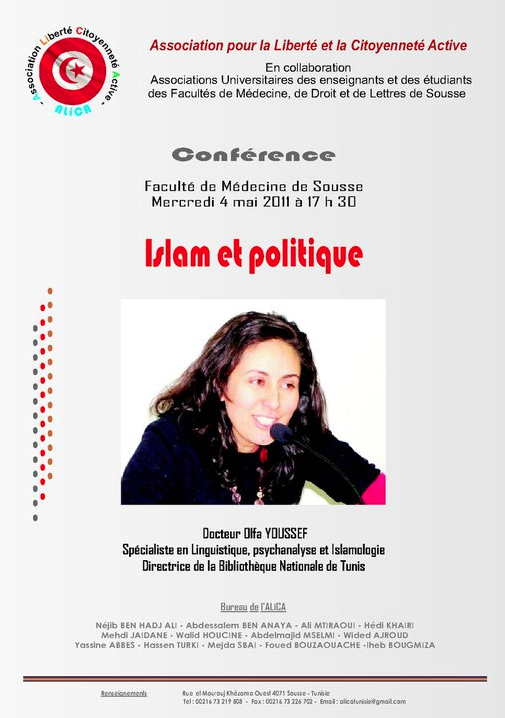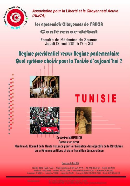 Dès le 17 janvier 2011, le Professeur Raymond Tempier, rédacteur canadien de Psy Cause, suggérait un soutien de notre revue à la révolution tunisienne et le 21 janvier une motion était votée en réunion du comité de rédaction (voir dans le blog). C’est très logiquement que via FaceBook devenu en Tunisie et dans l’ensemble du monde arabe, l’outil de communication qui amène les changements de société, le Professeur Ben Hadj Ali m’a fait l’honneur le 5 juin dernier d’être participant de l’Association pour la Liberté et la Citoyenneté Active (ALICA) qu’il préside et dont l’objectif citoyen est de soutenir le changement démocratique en Tunisie. C’est en avril que cette association a organisé sa première conférence intitulée « la Tunisie en marche ». En tant que résident français dans le sud tunisien (Zarzis) et en tant que psychiatre responsable de la revue Psy Cause, je suis entièrement solidaire de sa démarche.