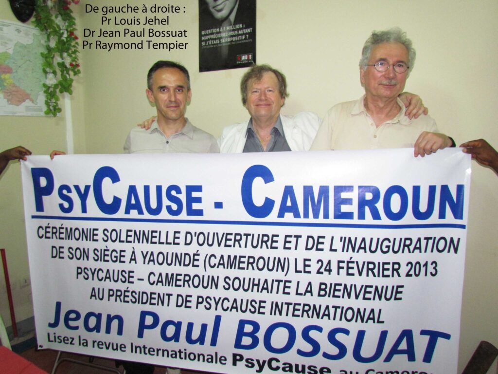 Le Dr Jean Paul Bossuat débute son discours par les raisons de sa venue en personne à la cérémonie d’inauguration. En particulier, l’initiative d’organiser un soutien des étudiants à leur travail de thèse mérite d’être reconnue. Cette initiative  se situe pleinement dans l’éthique de Psy Cause et est une contribution essentielle à l’émergence de nouvelles élites au Cameroun. Le Dr Jean Paul Bossuat  revient ensuite à son tour sur ce congrès Psy Cause à Parakou où la parité Nord/Sud des participants fut une réalité. C’est de ce congrès que naquit le rôle de la revue Psy Cause en tant qu’espace de publications majeur pour l’Afrique Subsaharienne à partir du second semestre 2010. Désormais les professionnels africains sont très attachés à la pérennité de « leur » revue Psy Cause quelles que puissent être les problématiques de fonctionnement à Avignon. Le Dr Jean Paul Bossuat cite deux signaux forts en ce mois de février 2013 : les psys ivoiriens ont fait parvenir à la trésorière de Psy Cause International 20 abonnements, et nous avons en ce jour la cérémonie d’inauguration du siège de Psy Cause Cameroun.