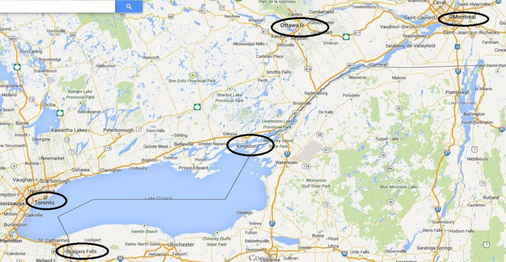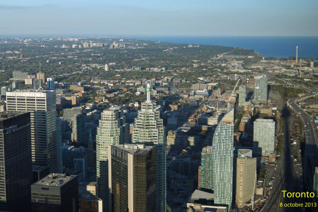 Ensuite, rapidement, nous partons à l’assaut des nœuds autoroutiers surchargés de véhicules à l’approche de la capitale de l’Ontario : Toronto. Là, nous retrouvons l’Amérique, ses gratte ciels, la foule. En fait, ce n’est pas à Ottawa, capitale confédérale, que l’on se sent véritablement chez les anglophones, car le bilinguisme y a une certaine réalité. Mais à Toronto, c’est différent. Là, on perçoit une tension antifrancophone. Toronto se vit comme la rivale de Montréal. Toronto étant la ville des banques et des affaires tandis que Montréal est la ville de la culture. Il y a peu de vie nocturne à Toronto à l’inverse de Montréal (sauf dans notre hôtel où des fêtards ont empêché de dormir certains d’entre nous). La fête n’est pas dans la rue. Le matin, à cause d’un petit déjeuner trop tardif en raison d’une discrète panne d’oreiller, nos protestations sur la lenteur du service nous font mal recevoir par la serveuse qui nous envoie un propos bien senti sur notre condition de Français. Nous quittons sans regret cette ville qui, heureusement, ne résume pas l’Ontario.