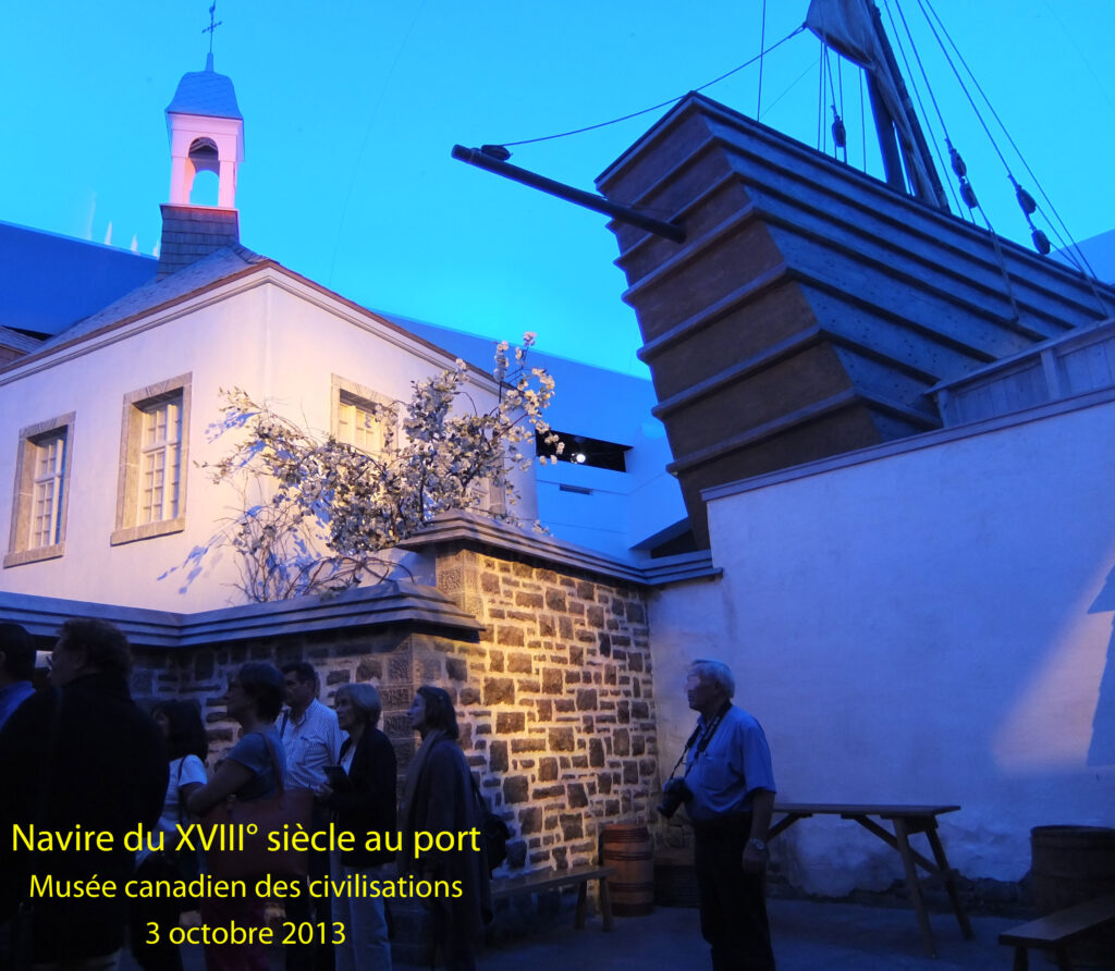 Le « musée canadien des civilisations » est à lui tout seul un condensé de la question des nations au Québec. Pour commencer, c’est un musée de l’agglomération d’Ottawa situé au Québec et dont l’architecte Douglas Cardinal est un amérindien. Ce musée, le plus visité du Canada, permet de comprendre concrètement et de façon spectaculaire la construction du Canada. On se promène dans les rues de la Nouvelle France puis du Canada du XIX° siècle sous un ciel artificiel très convaincant. Après la visite des totems des amérindiens de la Colombie britannique, et des « premières nations », on assiste à l’arrivée des Vikings puis des Français et des Anglais immédiatement en concurrence. Dans le bus, Mr Donald évoquera pour nous le drame d’Évangéline.
