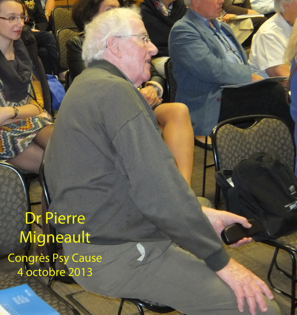 Nous allons faire un aparté avec le courriel du Dr Pierre Migneault adressé le 18 octobre dernier à propos du congrès d’Ottawa. Ce psychiatre de Montréal a suivi nos travaux et était présent à l’Hôpital Pierre Janet de Gatineau, dans la salle Jeanne d’Arc Charlebois à propos de la création de Psy Cause Canada, projet dans lequel il a l’intention de s’investir. Il travaille actuellement à la rédaction d’un commentaire du congrès que bien évidemment nous publierons sur le site. Après avoir exprimé sa satisfaction quant à nos carnets, et ses excuses pour son absence le dimanche en raison d’une obligation familiale, il écrit :