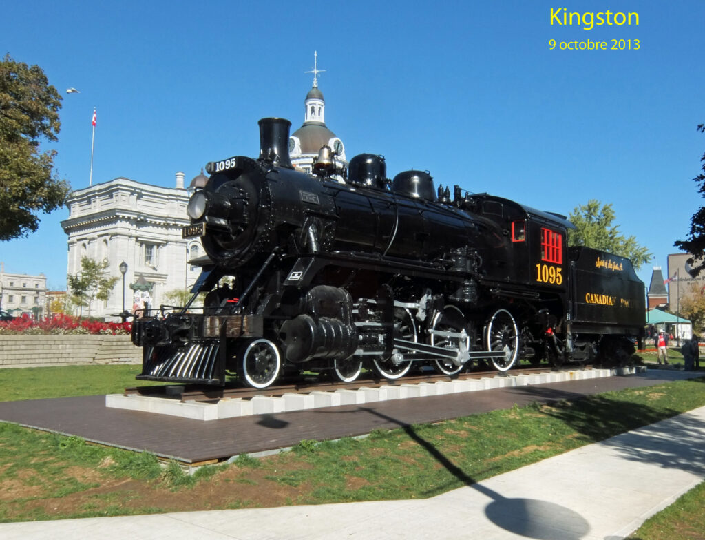 Nous faisons, ensuite, halte dans la charmante petite ville de Kingston, au bord du lac Ontario, avec ses immeubles de taille modeste et stylés, ses très jolis parcs paysagés et sa gare musée avec une locomotive à vapeur. Une de celles qui ont connu l’époque où le chemin de fer était un instrument irremplaçable de l’union du Canada de l’est à l’ouest. N’oublions pas que durant presqu’un demi siècle, le train était le seul moyen de déplacement rapide fiable sur de longues distances, avec longtemps comme seule alternative, le cheval. Ce fut donc un plaisir de parcourir le charme rétro de ce lieu.