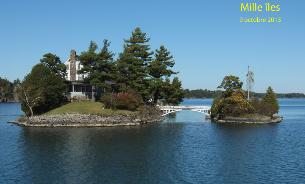 À l’extrémité nord-est du lac Ontario, commence le Saint Laurent avec ses « milles îles ». Et là, de nouveau, c’est l’enchantement. D’autant plus que le temps estival est toujours de la partie. Ces îles se répartissent de part et d’autre de la frontière avec les États Unis. De riches personnages y ont fait bâtir, qui une maison, qui un château. La promenade en bateau va de part et d’autre de cette frontière. Assez rapidement après les mille îles, nous retrouvons le Québec, puis Montréal. Le lendemain matin, nous serons reçus par l’intermédiaire du Dr Jean Dominique Leccia, en terre Mohawk. Nous y avons déjà consacré le carnet N°9.