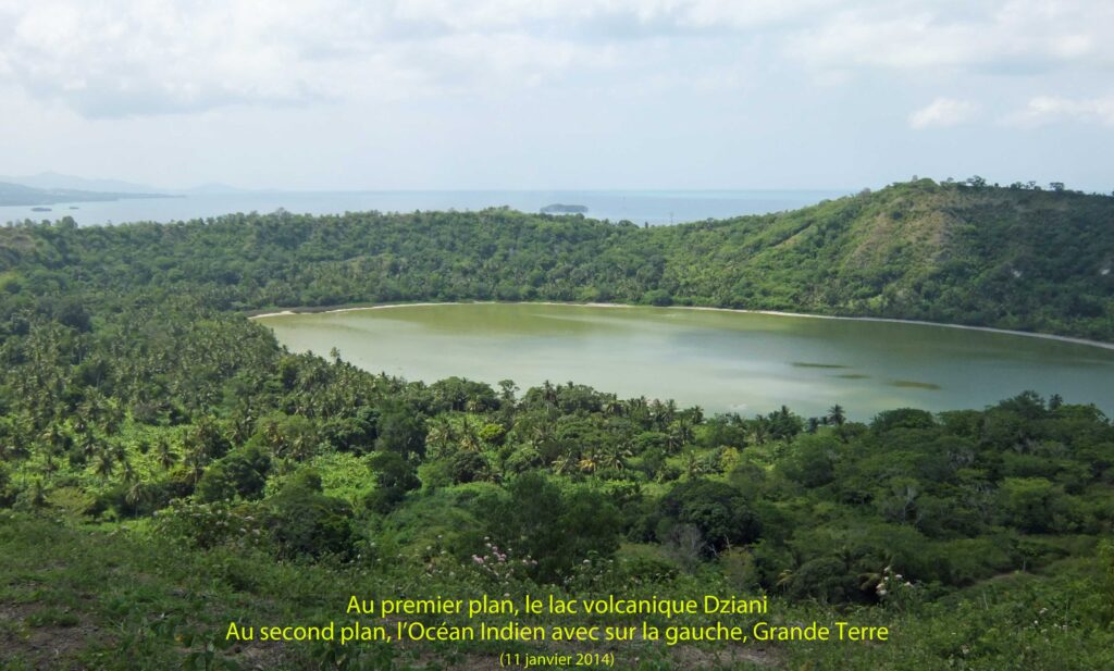 Depuis le précédent carnet, nous avons complété notre découverte de Mayotte avec la visite de Petite Terre. Là se trouvait le chef lieu du département, Dzaoudzi, jusqu’à ce que Mamoudzou lui ravisse cette position. Une chaussée appelée le Boulevard des crabes, relie cette petite ville au corps de Petite Terre. La principale curiosité à visiter est un lac de cratère avec de l’eau sulfureuse, le lac Dziani. Le cratère lui même forme la partie Nord-Est de la petite île et est en partie entouré par l’océan. Il est un spectacle très singulier mais la visite est très « physique » surtout par 40° sans ombre… N’oublions pas que Mayotte est un ancien volcan dont l’âge d’or remonte à huit millions d’années et totalement éteint depuis 10000 ans.