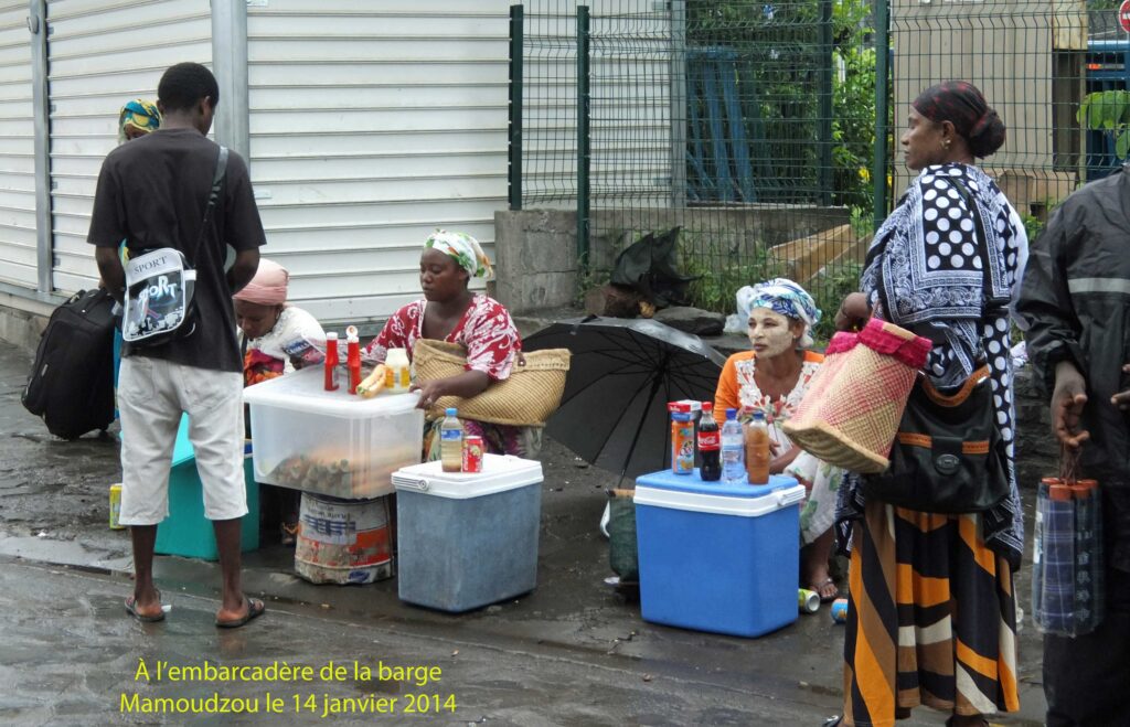 Aller de Grande Terre à Petite Terre et vice versa, est un incontournable de Mayotte : avec l’usage de « la barge ». Ce moyen de locomotion est passé dans le vocabulaire courant du département avec le verbe « barger ». Le point d’embarquement à Mamoudzou est très authentique avec les étals des marchands ambulants de sodas, de fruits tropicaux et de légumes. Les femmes ornant leur visage du masque de beauté coloré spécifique à Mayotte. À cet endroit particulièrement, la France rencontre l’Afrique, à moins que ce ne soit l’inverse. L’Islam également y rencontre l’Afrique selon une version libre et peine de couleurs.