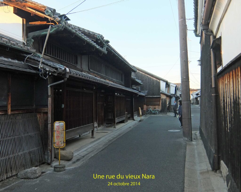 La journée du 24 octobre nous permet de visiter une charmante petite ville plutôt rurale qui est au cœur de la civilisation japonaise, Nara, qui fut la première capitale de 710 à 784, où s’élabora la culture spécifique du Japon, après intégration des apports chinois et coréens. Son vieux quartier traditionnel dans lequel nous avons déambulé, abrite des maisons de marchands et des boutiques traditionnelles des XVIII° et XIX° siècles en bois, qui n’ont guère changé depuis. Cette première capitale historique comporte plusieurs temples remarquables. L’un d’entre eux a été le clou de notre visite.