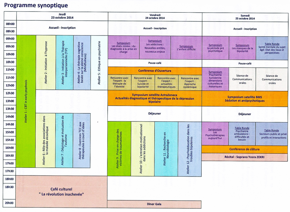 1 réflexion sur “Premier congrès tunisien de psychiatrie (23 au 25 octobre 2014)”