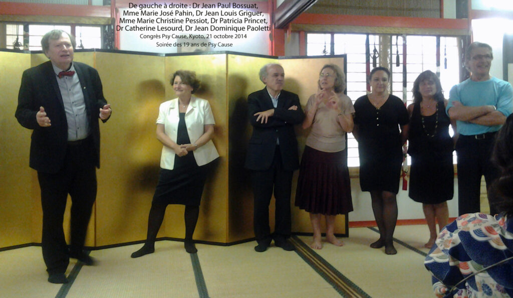 – Porte parole des psychiatres libéraux de Marseille : Dr Jean Dominique Paoletti. Psychiatre d’exercice libéral à Marseille, membre de l’association Psy Cause International, il a été officialisé dans cette fonction lors de l’AG ouverte à Kyoto du 22 octobre 2014. Tout au long de cette année 2014, il a été très présent aux côtés de Psy Cause. Il s’est fait à Marseille l’avocat du congrès de Kyoto auprès de ses collègues et a convaincu une très importante délégation de congressistes de se joindre à nous. Au cours de ces journées au Japon, il apporte sa note personnelle à l’ambiance et participe par son humour et sa disponibilité auprès de tous, à une dynamique de groupe réussie. Lors d’une réunion conviviale organisée par lui à Marseille le 16 novembre 2014, il a exprimé le souhait de nombreux collègues que soit organisé de nouveau un voyage/séminaire en Égypte (à lire deux articles à ce sujet sur le site de Psy Cause).