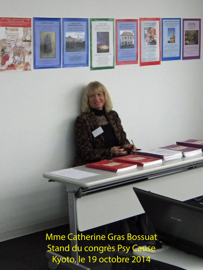 – Conseillère en marketing : Mme Catherine Gras Bossuat. Du fait de son expérience professionnelle dans l’organisation au plus haut niveau de séjours touristiques de cadres, au sein d’une grande entreprise industrielle internationale dont le siège est à Paris, Mme Catherine Gras Bossuat a été sollicitée par l’association Psy Cause International pour son expertise au niveau des congrès internationaux. Elle s’était investie dans Psy Cause pour la première fois à l’occasion de notre congrès au Cambodge de novembre 2012 qui, sans elle, n’aurait pu avoir lieu. Membre de l’association, elle a donc été mandatée pour cette fonction de conseillère en marketing, lors de la réunion du 24 mai 2013, au retour du repérage au Canada en vue du congrès d’Ottawa, auquel elle avait activement participé.