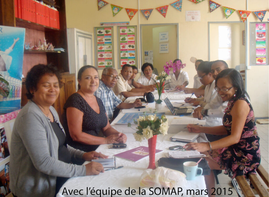 La visite de l’établissement universitaire de soins et de santé publique d’Analakely, centre de consultations et hôpital de jour, dont le professeur Bertille est directeur de la section en santé mentale à été le second point fort. En tant que secrétaire générale de la SOMAP, société malgache de psychiatrie dont le professeur Adeline est présidente, et le Docteur Lanto, trésorier, le Professeur Bertille nous a invitées à participer à la réunion de préparation de leur congrès annuel qui se déroulera à Tananarive les 16 et 17 septembre 2015. Nous nous proposons d’y participer et d’y représenter Psy Cause.