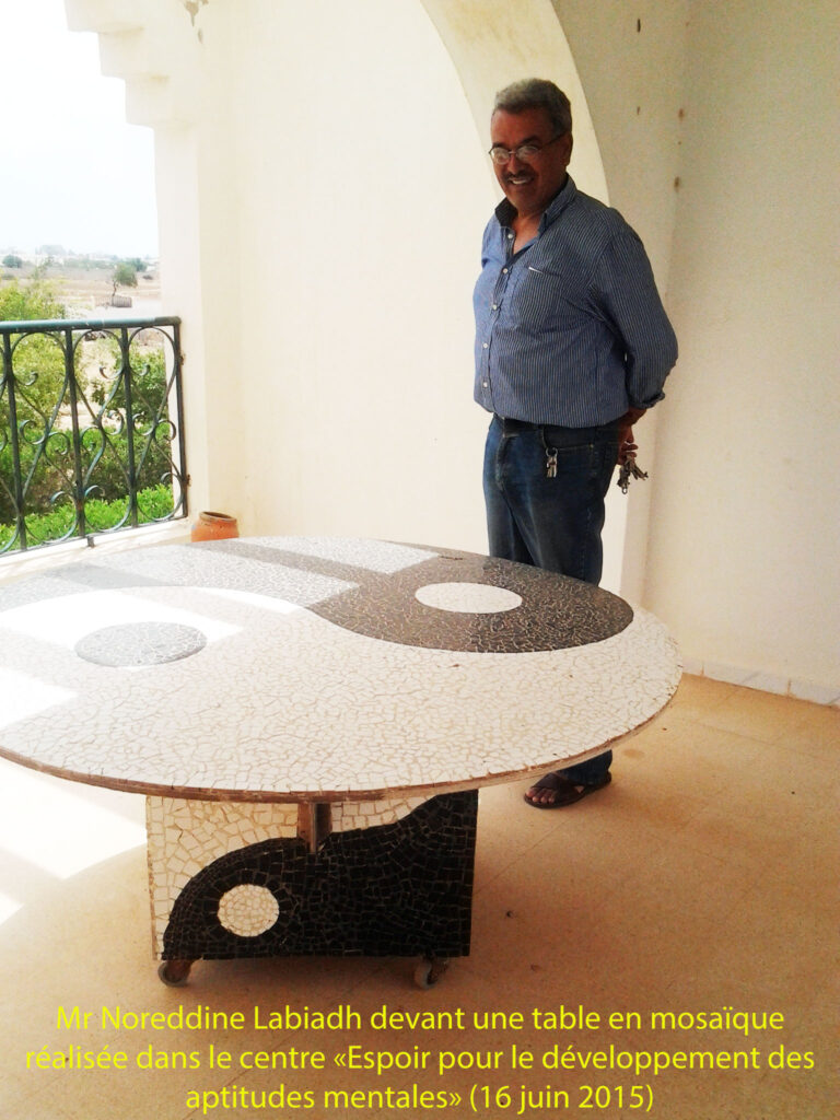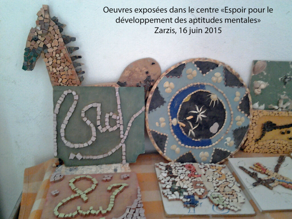 Le 16 juin, Mme Nyl Erb effectue une longue visite au centre « Espoir pour le développement des aptitudes mentales » de Zarzis où nous étions venus une première fois le 5 janvier 2015. Le directeur, Mr Noureddine Labiadh, est très heureux de cette seconde visite au titre de Psy Cause et accueille chaleureusement Mme Nyl Erb. Il lui fait visiter les ateliers destinés aux enfants et jeunes adultes autistes et handicapés mentaux. Il lui explique son fonctionnement en externat avec bus de ramassage dans les familles et lui parle de ses difficultés. Elles sont d’ordre économique avec un prix de journée de un Euro par jour et par enfant seulement, ce qui oblige à des ressources issues de la vente des objets fabriqués à partir de matériaux de récupération, et de la générosité des sponsors. Mr Noureddine Labiadh se dit aussi très inquiet de l’âge limite de 30 ans quant à l’accueil de jour qui est proposé, alors que rien n’est prévu après. Ensuite, ces autistes et handicapés peuvent se retrouver à la rue et être victimes de toutes sortes d’abus de faiblesse.