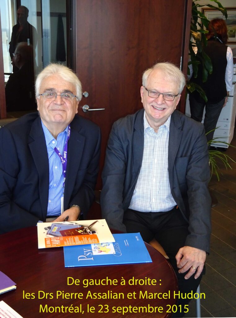 Le Dr Pierre Assalian, président du comité de développement professionnel de l’AMPQ, reçoit personnellement ses hôtes de Psy Cause Canada. La rencontre est tout aussi cordiale que celle du 23 septembre dernier. Très vite, il aborde la première question à l’ordre du jour : la présence officielle de Psy Cause au congrès du 50ème anniversaire de l’AMPQ qui se déroulera les 2, 3 et 4 juin 2016 au Fairmont Tremblant. L’AMPQ accorde à Psy Cause une heure et demie, le vendredi 3 juin, de 15h30 à 17h00. Les Drs Marcel Hudon et Suzanne Lamarre nous informent : le Dr « Pierre Assalian nous a confirmé que l’AMPQ pouvait s’engager à endosser pleinement notre recommandation d’inviter le professeur Philippe Jeammet à nous faire une conférence sur le thème de notre choix et qu’il s’engageait à le traiter sur un pied d’égalité avec les 4 autres conférenciers prestigieux déjà invités pour le Congrès. » Quant à la présentation de Psy Cause lors de ces trois jours, elle pourrait se faire sur place dans le cadre « d’un kiosque (une table d’environ 2 mètres avec un mur de séparation de chaque côté) où il serait possible de présenter des revues, un PowerPoint en continu sur écran d’ordinateur et d’échanger avec les personnes démontrant de l’intérêt. »