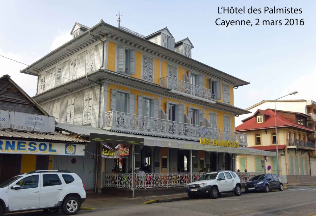 Ci-contre : l’Hôtel des Palmistes, monument historique situé en bordure de la Place des Palmistes.