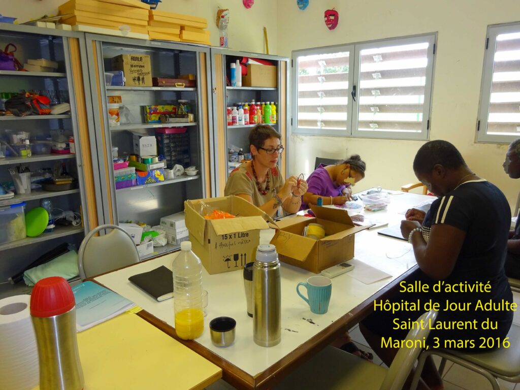 C’est un ancien cadre de Psy Cause, Mr Pascal Schindelholz, lequel avait été très impliqué dans l’organisation de notre congrès à Tahiti en 2006, cadre de santé en pédopsychiatrie à Saint Laurent du Maroni, qui a attiré notre attention sur la pertinence de mettre en lumière des pratiques soignantes originales de l’Ouest Guyanais. La Dr Linette Tédongmo, médecin chef du pôle de psychiatrie, a accepté de s’investir dans ce projet. Tandis que Mme Isabelle Morel, cadre de santé du pôle de psychiatrie, coordonne avec Mr Pascal Schindelholz le travail de repérage.