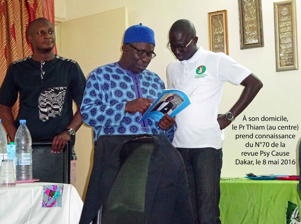Le Pr Thiam fait part au directeur de le revue Psy Cause, de sa satisfaction quant à la réalisation du numéro Spécial Sénégal qui, par ailleurs, a concrétisé le passage à la couleur, et de son projet d’un second numéro, dans les mois à venir, sur les mêmes bases.
