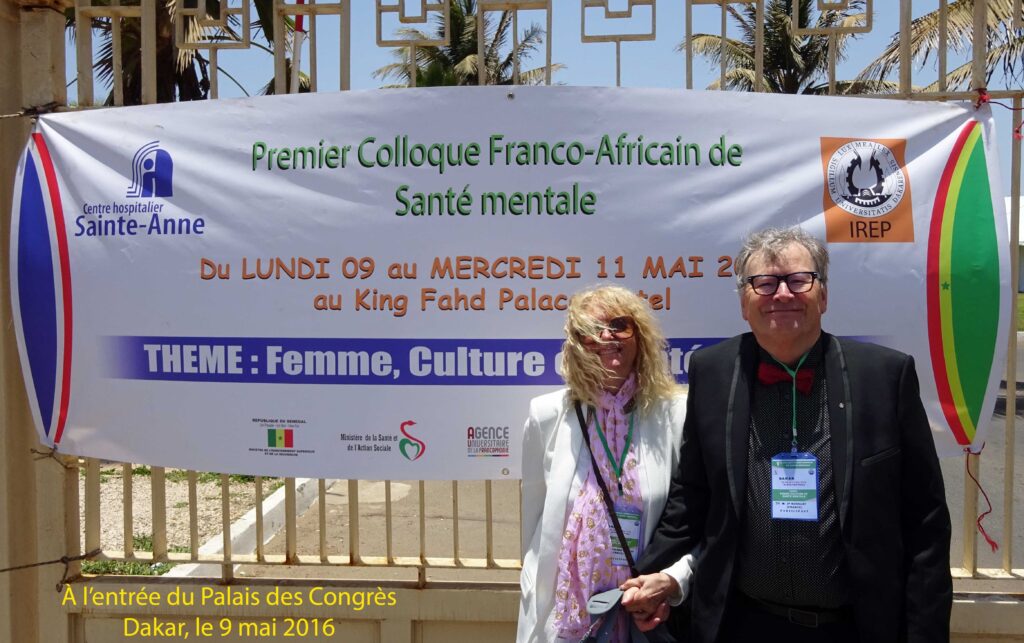 En tant que Directeur de la revue Psy Cause, le Dr Jean Paul Bossuat est l’invité du Pr Mamadou Habib Thiam et de son équipe à ce colloque dont le thème est « Femme, culture et santé mentale » et qui se déroule du 9 au 11 mai 2016 au King Fahd Palace de Dakar. La partie française de ce colloque est pilotée par l’Hôpital Sainte Anne, la Dr Marie Odile Pérouse de Montclos, Chef du service de Psychologie et Psychiatrie de l’Enfant et de l’Adolescent (sixième secteur de psychiatrie infanto-juvénile à l’Hôpital Sainte Anne), présidant le comité scientifique. Le Pr Mamadou Habib Thiam, Chef du service de psychiatrie du CHNU de Fann – Dakar, Directeur de l’IREP (Institut de Recherche et d’Enseignement de Psychopathologie) à l’Université Cheikh Anta Diop de Dakar, préside le comité d’organisation.