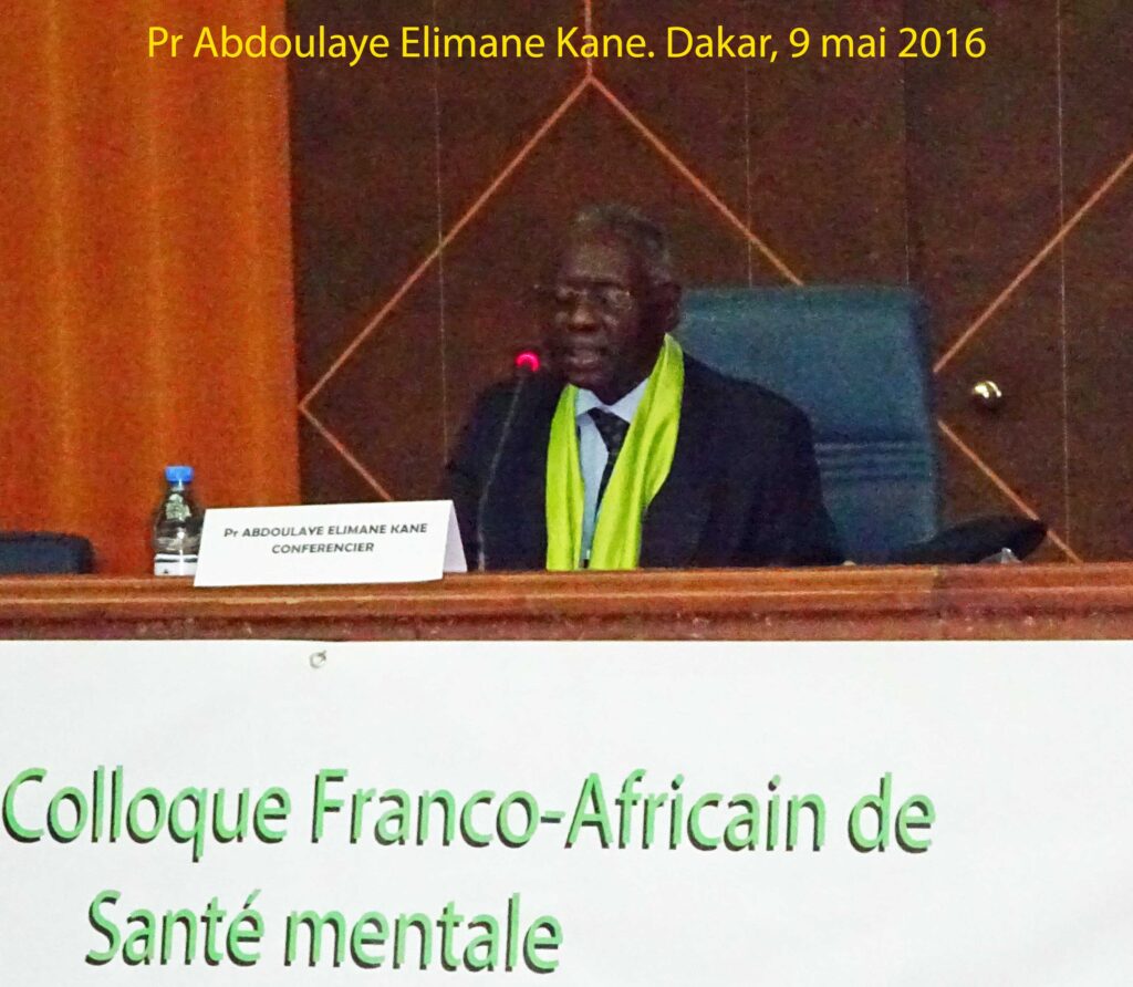 En présence du Pr Mamadou Habib Thiam et de la Dr Marie Odile Pérouse de Montclos, la conférence introductive est donnée par le Pr Abdoulaye Elimane Kane, philosophe, ministre à plusieurs reprises, qui fut directeur de la célèbre revue de psychopathologie africaine. Il introduit son propos par ces mots : « Professeur de philosophie à l’Université Cheikh Anta Diop (à la retraite), ami de la Société de Psychopathologie et d’Hygiène mentale de Dakar et de la revue « Psychopathologie africaine », il m’a semblé sage et judicieux de répondre à cette invitation en fondant ma communication sur ce que le regard et l’histoire de la philosophie en fournissent comme bases de réflexion. » Il s’interroge notamment : « comment les différents savoirs sur l’homme – la psychiatrie notamment – peuvent-ils aider à construire un humanisme du XXIème siècle sachant concilier le principe d’une pluralité d’identités et le principe d’une unité de l’espèce humaine ? »