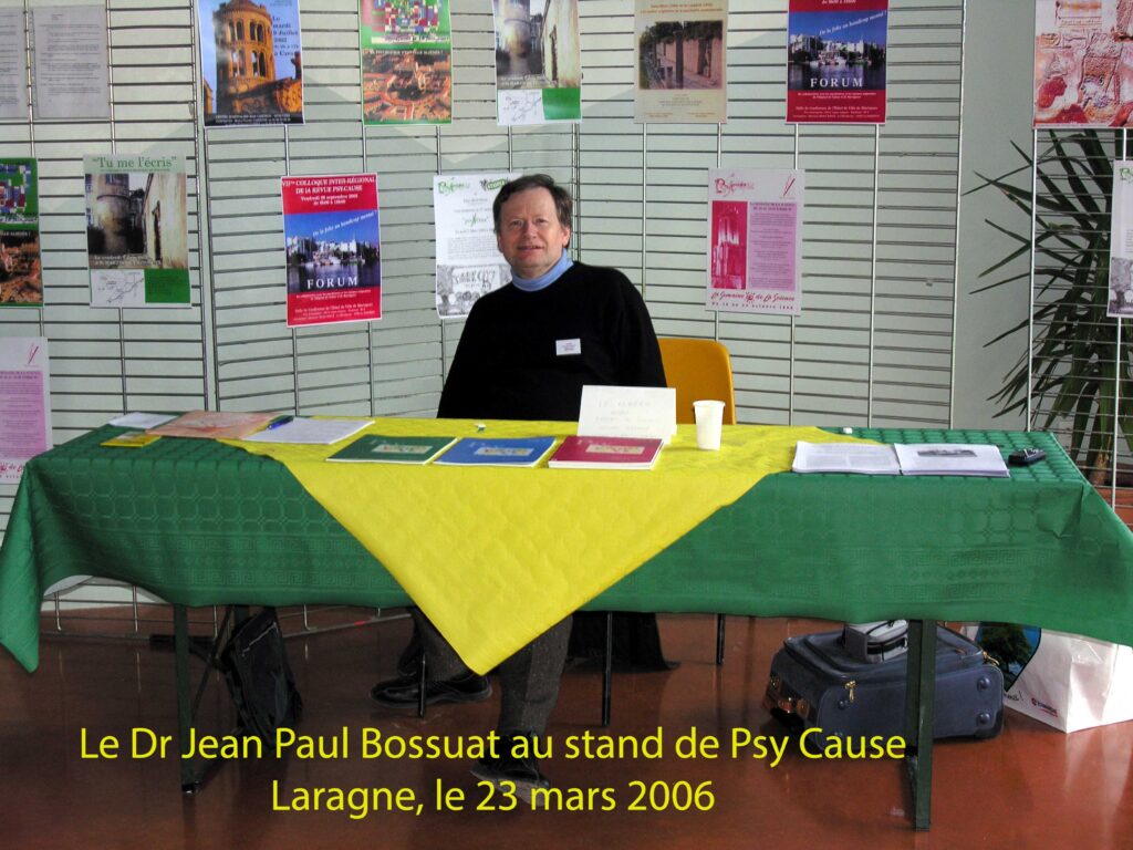 À la suite de notre congrès de Carcassonne le 10 juin 2005 (après un parcours de dix années), il fut décidé de réaliser des stands de Psy Cause avec présence d’une documentation et d’affiches illustratrices de nos colloques et activités. Nous proposons à nos lecteurs la restitution d’une brève chronique de notre association/revue selon le prisme de nos stands archivés par des documents photographiques. Cette chronique ne peut prétendre être exhaustive mais elle s’articule autour de bornes symboliques : des stands que l’on s’est donné la peine de mettre en place et de photographier.
