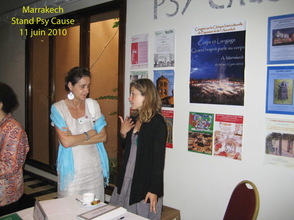 Notre second stand référencé est celui qui fut aménagé à Marrakech en juin 2010 à l’occasion de notre VIème congrès international qui avait pour thème « Corps et langage. Quand l’esprit parle au corps. » Cette manifestation scientifique était la troisième en Afrique Méditerranéenne. Rappelons en 2003 (Alexandrie et Le Caire) et en 2005 (Assouan) nos deux congrès franco-égyptiens. Jusqu’à cette année 2010, la direction du Centre Hospitalier de Montfavet n’avait cessé de nous associer à la valorisation de l’établissement en international. Nous lui devons d’avoir eu les moyens d’ouvrir au monde notre revue. Et de pouvoir continuer ensuite dans un contexte moins favorable.