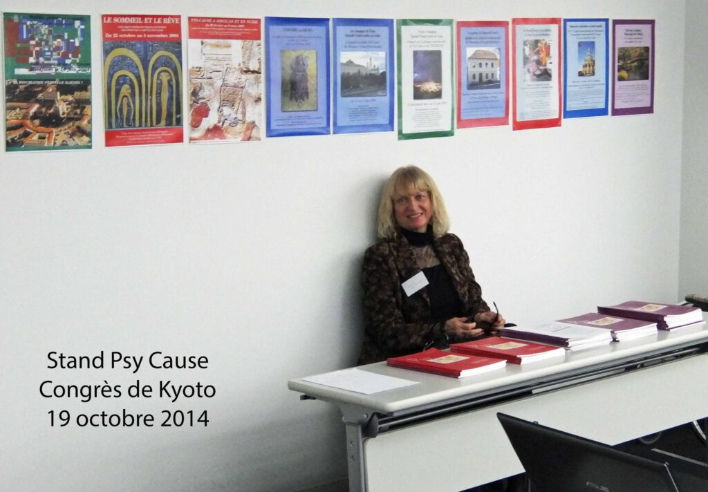 Notre septième occurrence d’un stand archivé est au Japon : le 19 octobre 2014 à Kyoto. Le Pr Shigeyoshi Okamoto n’avait, pour des raisons de santé, pu faire le déplacement deux années plus tôt jusqu’à Siem Reap. Spécialiste de la Thérapie de Morita, il a managé, dans sa ville qui est l’ancienne capitale impériale du Japon, notre IXème congrès international, en coordination avec deux psychiatres de Psy Cause volontaires. L’hôpital quasi centenaire spécialisé dans ce traitement inspiré du zen, fondé par un disciple de Morita en 1922, a décidé de fermer juste après notre passage. De ce fait, le Pr Shigeyoshi Okamoto a sublimé notre colloque en une émouvante cérémonie de clôture et a associé Psy Cause à un moment historique. Les communications du congrès, y compris japonaises, se sont déroulées en langue française. Les intervenants japonais nous ont bien évidemment présenté divers aspects de l’enseignement de Morita mais nous ont également parlé du statut de la femme médecin dans leur culture et de la psychanalyse lacanienne bien présente au Japon. Des liens suivis ont été établis qui se sont traduits par un numéro de la revue francophone Psy Cause sur le Japon publié en début d’année 2016.
