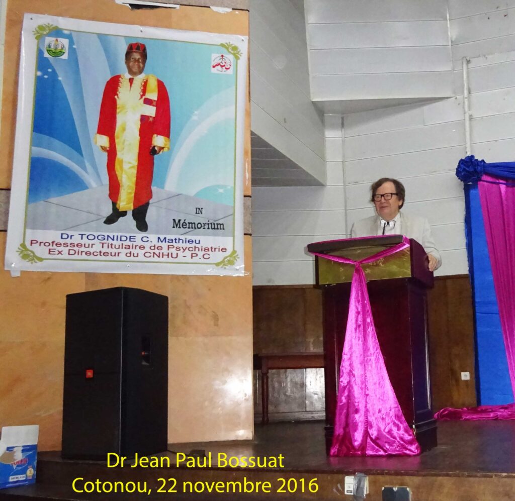 Nous poursuivons ce second volet avec la communication du directeur de la revue en plénière le 24 novembre « La thérapie de Morita à l’Hôpital Sanseï (Kyoto) ». Le Dr Jean Paul Bossuat introduit son propos en rappelant que sa présence à Cotonou en ce 24 novembre 2016 est un retour aux sources d’une vocation africaine de la revue. Dès 2003 en effet, le Pr René Gualbert Ahyi, alors qu’il était le seul psychiatre universitaire béninois, s’était adressé à la revue Psy Cause. À cette époque, le Centre Hospitalier de Montfavet (Avignon), dans lequel Psy Cause était reconnue comme une revue d’établissement, soutenait le développement de la psychiatrie béninoise. Notre revue ouvrait alors largement ses pages à des publications béninoises. Agrégé en 2006, le Pr Mathieu Tognidé soutenait en 2007 notre projet de congrès à Parakou réalisé en 2008 en partenariat avec l’université de cette ville. Il insistait ensuite pour que Psy Cause s’ouvre à l’Afrique, obtenant à cette fin une reconnaissance du CAMES. Ce sera une réalité à partir de 2010 et définitivement formalisé en septembre 2012. Autant dire que le Pr Mathieu Tognidé, auquel ce colloque de santé mentale rend hommage, a été au cœur de la transformation de Psy Cause en revue francophone internationale.
