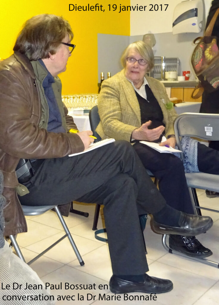 Dans un premier temps, avant la cérémonie, le directeur de la revue Psy Cause, le Dr Jean Paul Bossuat, a la possibilité de s’entretenir avec la Dr Marie Bonnafé, fille du Dr Lucien Bonnafé. Cette dernière est l’invitée de marque à l’inauguration. Elle évoque son métier de pédopsychiatre et de psychanalyste. Elle parle de ses années passées à « l’unité du soir » de pédopsychiatrie du treizième arrondissement de Paris sous la direction du Dr Tony Lainé. Elle se confie également sur son positionnement en tant que psychanalyste en accord avec son père qui « avait raison de dénoncer le lien d’argent : les psychanalyses entièrement remboursées marchent très bien. » De son côté, le Dr Jean Paul Bossuat, échange à propos de son expérience personnelle de travail avec le Dr Lucien Bonnafé au sein du comité de rédaction de la revue Vie Sociale et Traitement (revue des équipes de psychiatrie éditée par les CEMEA). Les fondamentaux de cette publication l’ont beaucoup inspiré pour fonder Psy Cause.