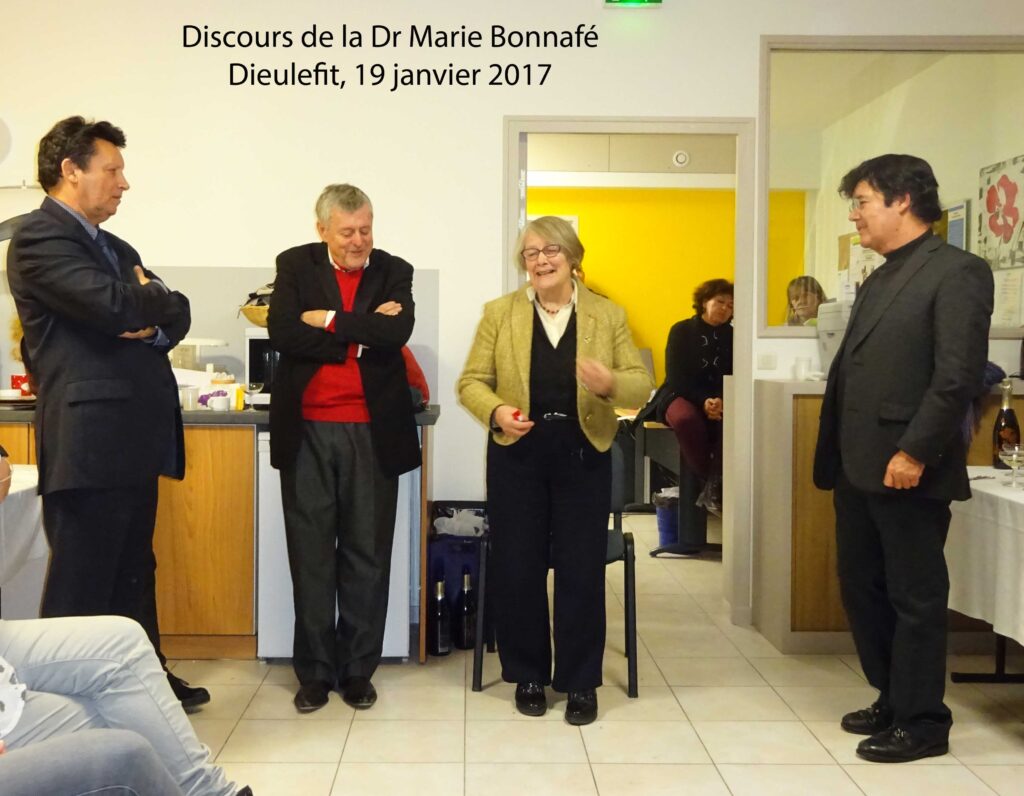 Donner le nom de Lucien Bonnafé, à Dieulefit, à un lieu de soins psychiatriques n’est pas une première, puisque, comme nous l’a fait observer la Dr Marie Bonnafé juste avant de couper le ruban, tout un hôpital a déjà été dénommé ainsi (l’EPSM de Roubaix). Cela témoigne de l’importance du message désaliéniste et de l’attachement au concept de secteur. À Dieulefit, nous avons découvert une équipe pluridisciplinaire très accueillante et optimiste. Une raison d’espérer ?