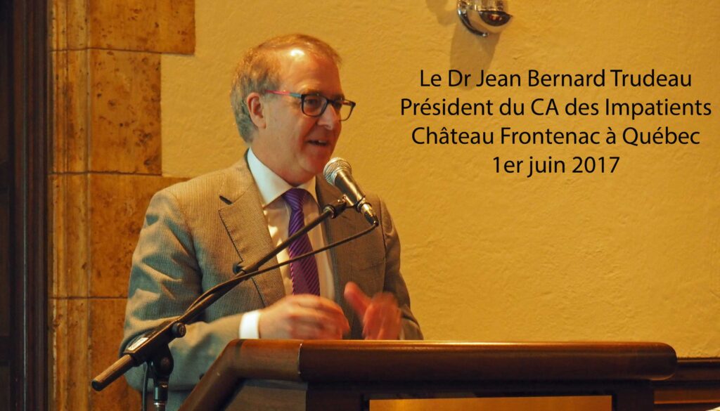 Le Dr Jean-Bernard Trudeau, président du conseil d’administration des Impatients et premier intervenant, a présenté la mission de cet organisme qui célèbre cette année son 25ème anniversaire.