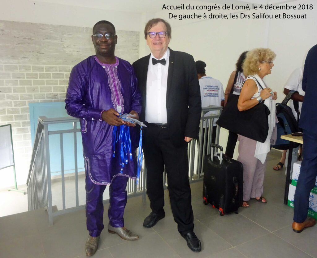 Ce premier carnet concerne l’ouverture du congrès en début de matinée du 4 décembre 2018 à l’université de Lomé, dans la capitale du Togo. Le Dr Saliou Salifou, Président du comité togolais d’organisation, psychiatre assistant – chef de clinique, nous accueille en haut du grand escalier de l’auditorium, où est installé l’accueil des congressistes. Il écrit dans son mot introductif du « livre des résumés » remis à chaque inscrit, que « nous sommes tous des africains » selon Michel Brunet, titulaire de la chaire de paléontologie au Collège de France. Il précise alors : « je souhaite la bienvenue aux africains venant de France, aux africains venant du Canada, aux africains venant de l’Afrique et, pour faire court, aux africains venant des quatre coins du monde. »