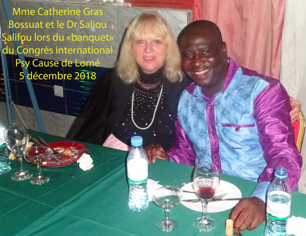 La femme du Dr Jean Paul Bossuat, Mme Catherine Gras Bossuat, n’a également pas ménagé sa peine, en France, pour que ce congrès soit une réussite. En tant que Secrétaire de l’association Psy Cause International, elle est une interlocutrice privilégiée des principaux acteurs africains, canadiens et français qui constituent le réseau francophone de la revue, lesquels pour la plupart l’ont rencontrée lors de ses déplacements à l’étranger ; elle a mis en place et suivi notre partenariat logistique avec l’agence FRAM d’Avignon ; elle est aux côtés du directeur de Psy Cause lors des étapes de la conception et de la diffusion des numéros, en particulier du N°76 Spécial Togo.