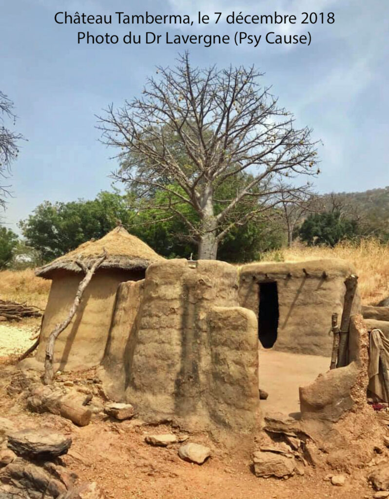 Tout au long des quinze dernières années qui ont connu douze congrès Psy Cause internationaux, il a été de tradition de soigner particulièrement la découverte géographique et culturelle des pays hôtes. C’est bien évidemment le cas pour notre congrès de Lomé au Togo. Mme Régine Olivier, notre partenaire avignonnais FRAM, a proposé aux congressistes plusieurs circuits. En particulier, elle a organisé avec son réceptif un convoi de deux bus pour la visite, dans le cadre d’un déplacement de trois jours jusqu’à la région frontalière du Burkina Faso au nord du pays, des châteaux d’argile crénelés des Tamberma, inscrits au patrimoine mondial de l’UNESCO, l’un d’entre aux ayant illustré l’affiche du congrès. Le Dr Thierry Lavergne, notre vice président, a été de cette excursion, en compagnie de la majorité des congressistes « occidentaux ». Il a communiqué la photo ci contre.